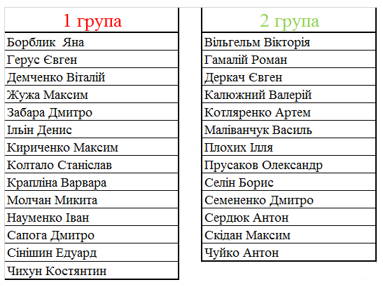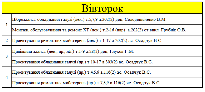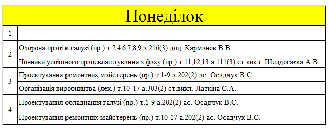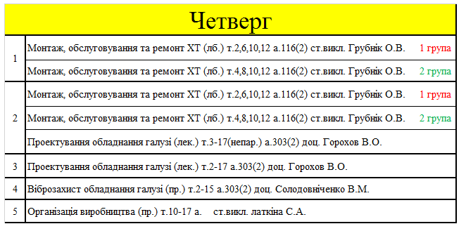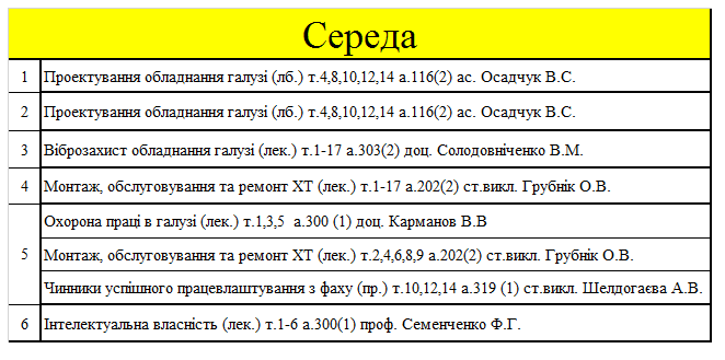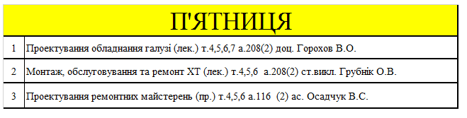 РОЗКЛАД ЗАНЯТЬ